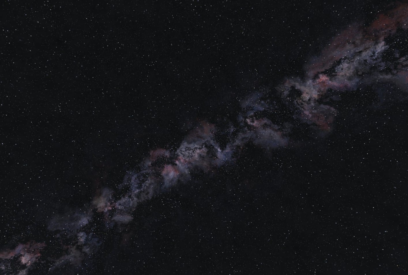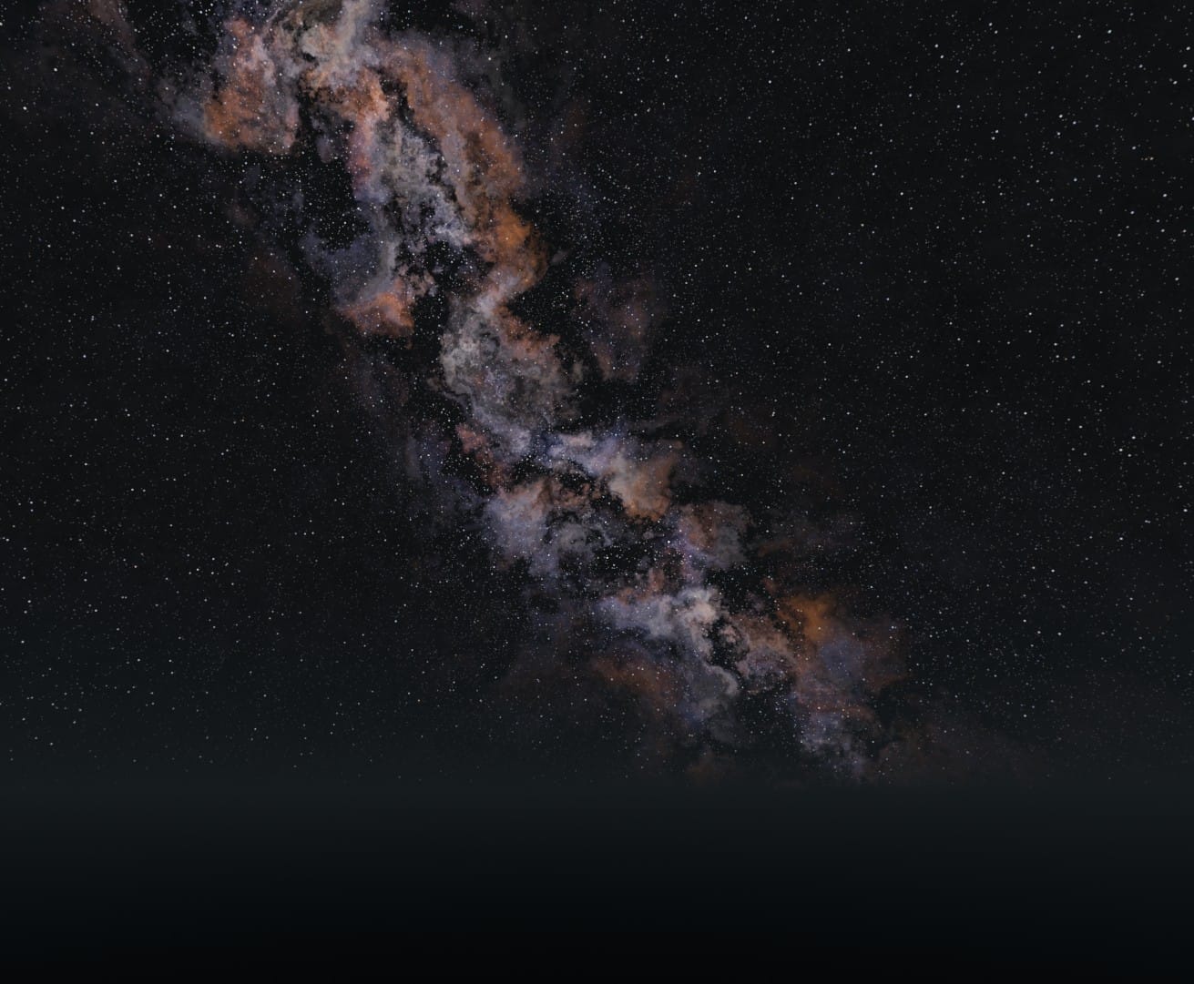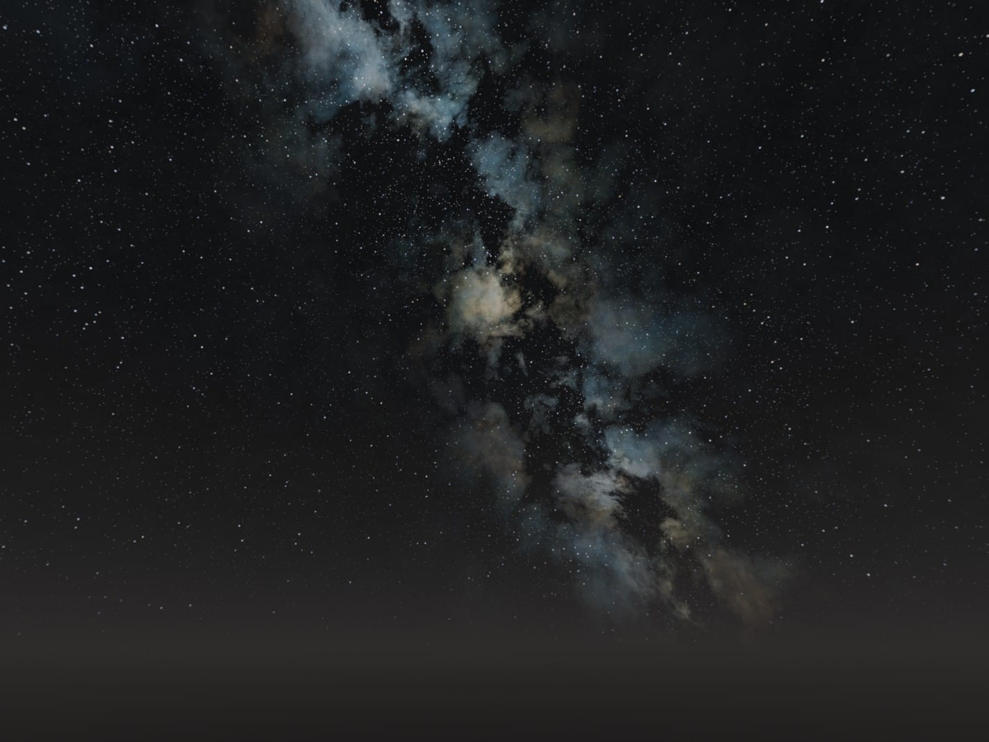 By subtracting a secondary gradient, calculated in a similar way based on \(X\) that resembles the central shadow of the milky way, and by subtracting a detailed voronoi texture to introduce more randomness, we get: