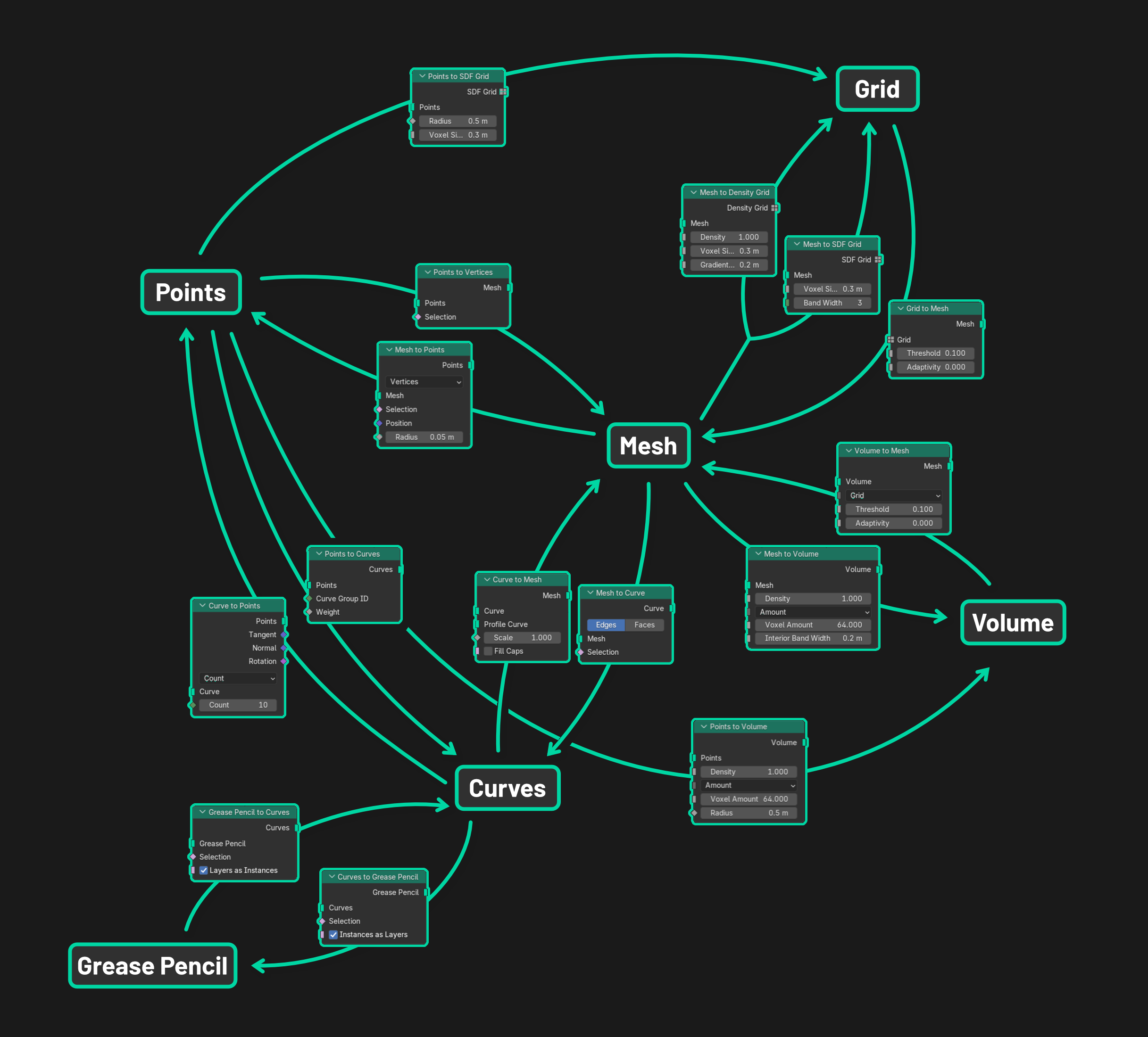 Node Stuff Geometry Nodes conversion matrix A cheat sheet for converting between domains in Geometry Nodes in Blender 5.0. © artsnscience.eu Node Wrangler A must-have for every node nerd.